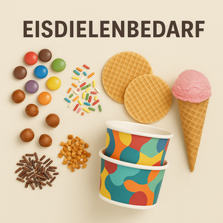 Wir bieten neben unseren Speiseeisprodukten ein breites Spektrum an Bedarf für den Verkauf von Speiseeis an. Bei uns bekommen Sie alles für den Verkauf von Eis aus einer Hand.